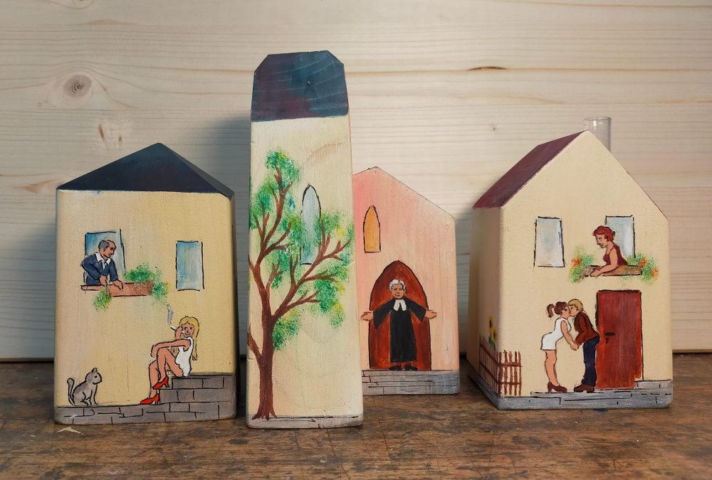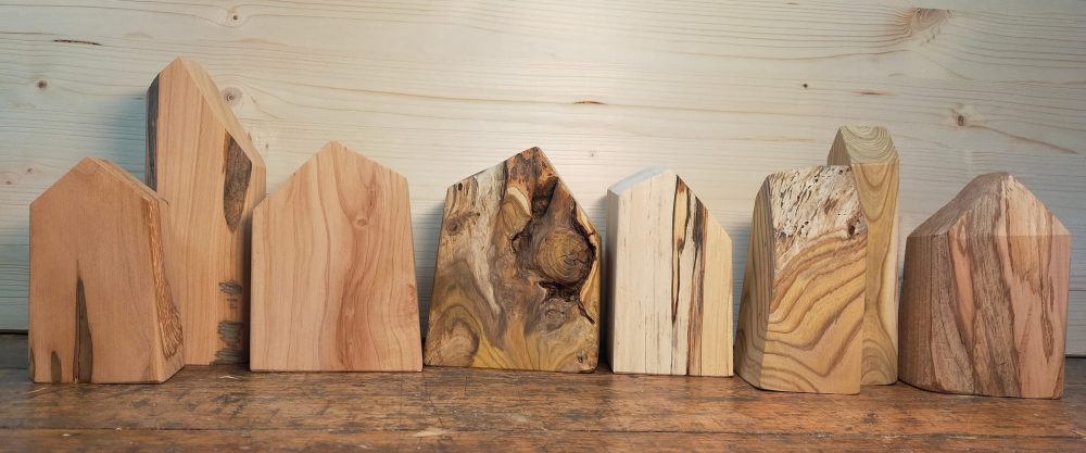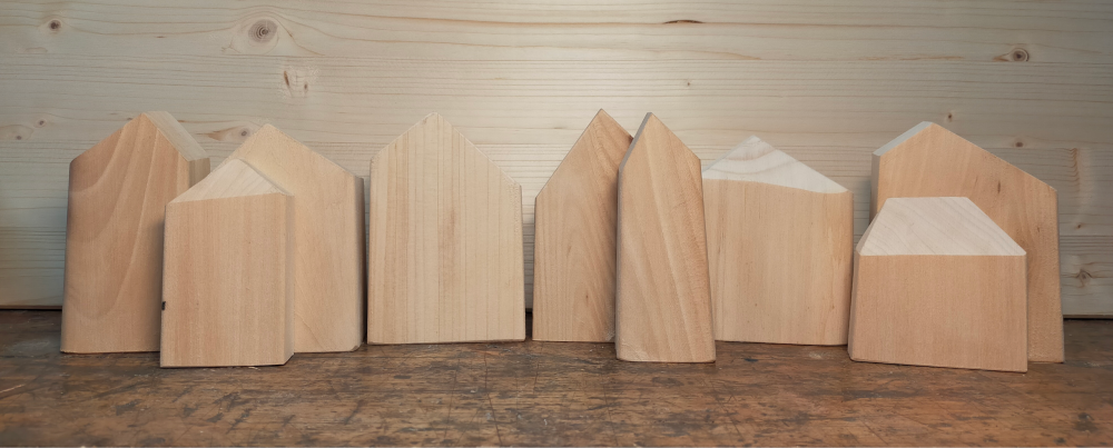 Häuser aus Holz gesägt und geschliffen mit miniaturmalerei oder zum Selbstbemalen
